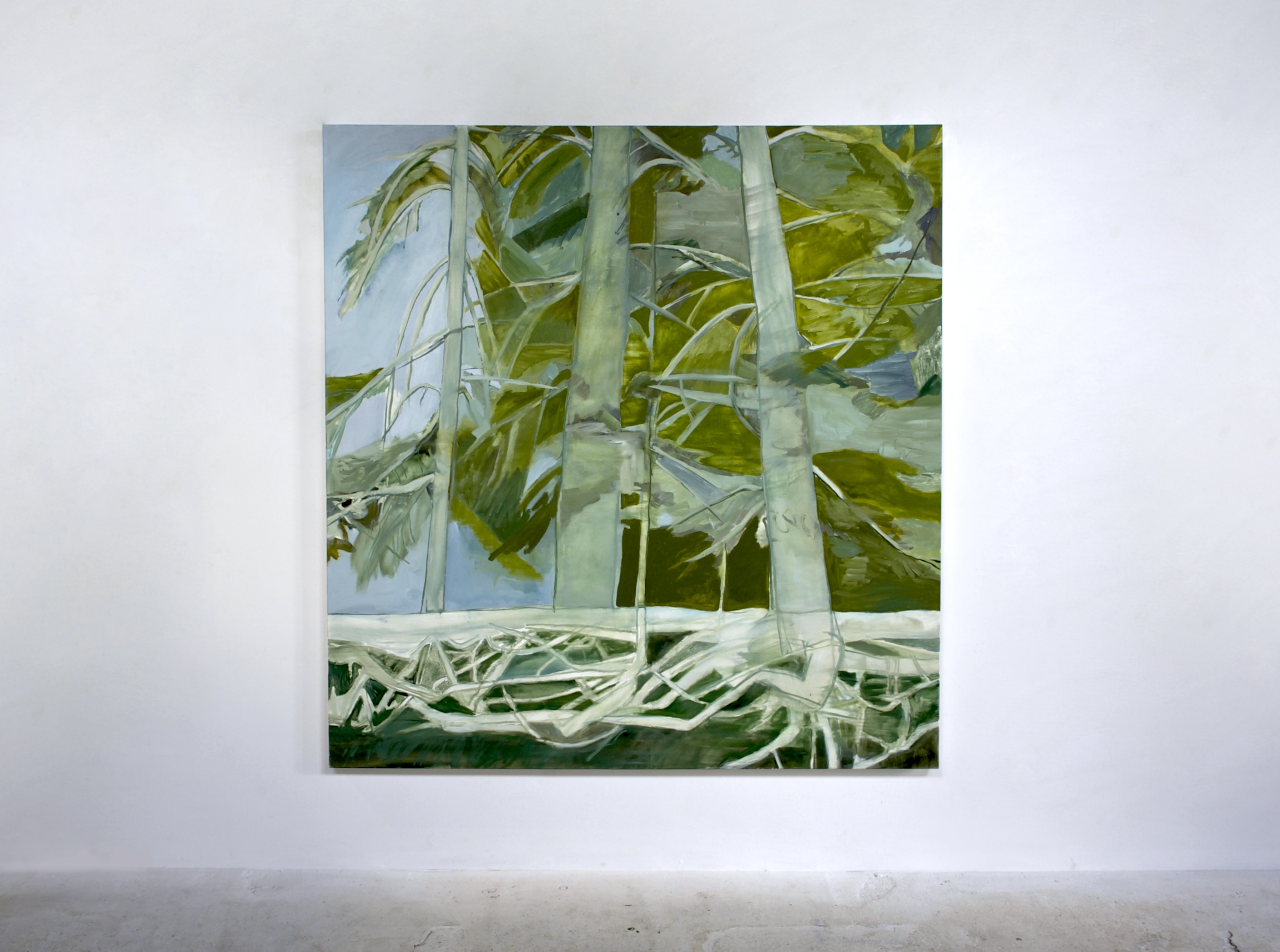 Sun through trees, oil on canvas, 68 x 65 inches, 2025.
