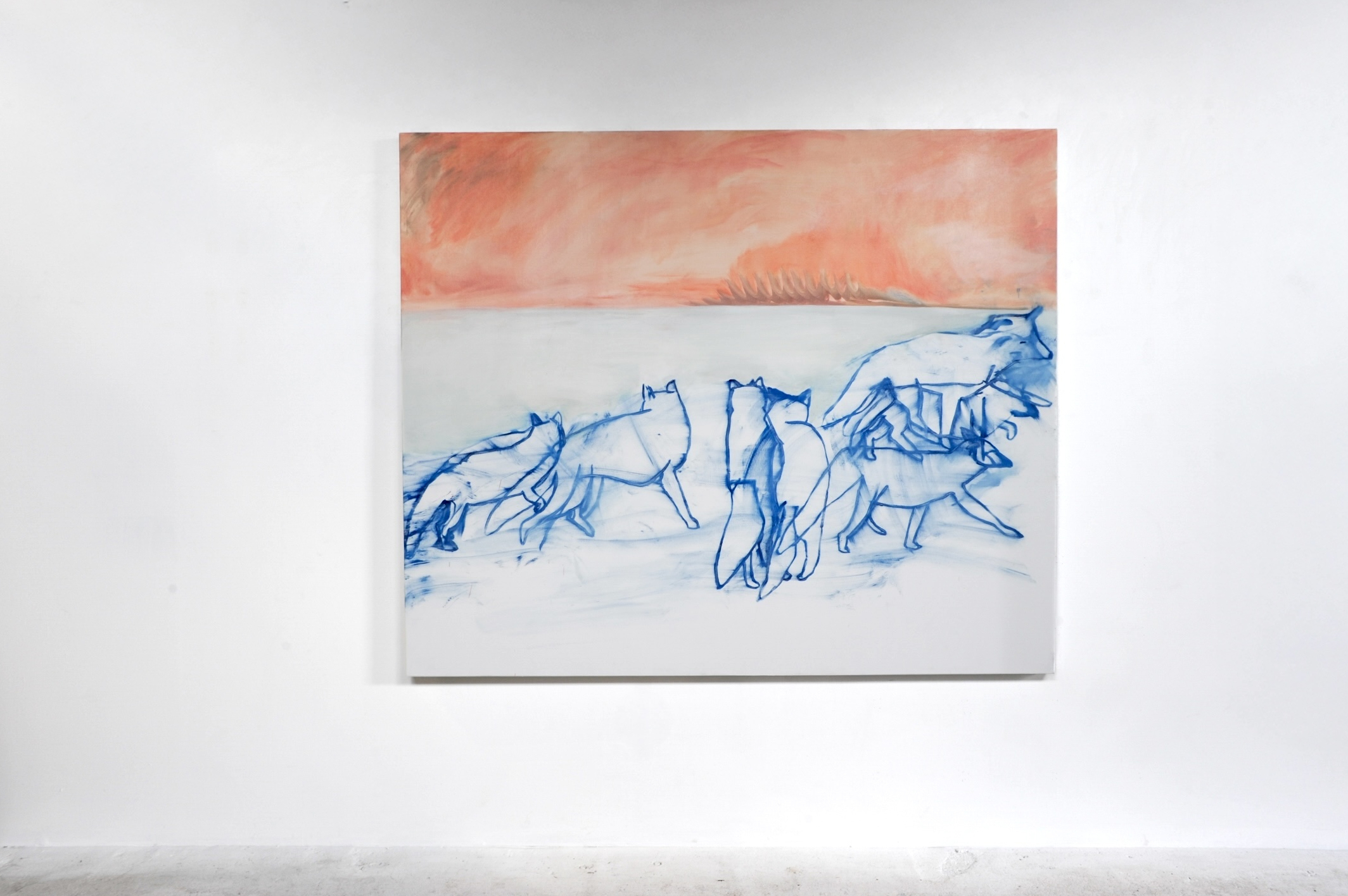 Foxes at sunrise, oil on canvas, 60 x 72 inches, 2025